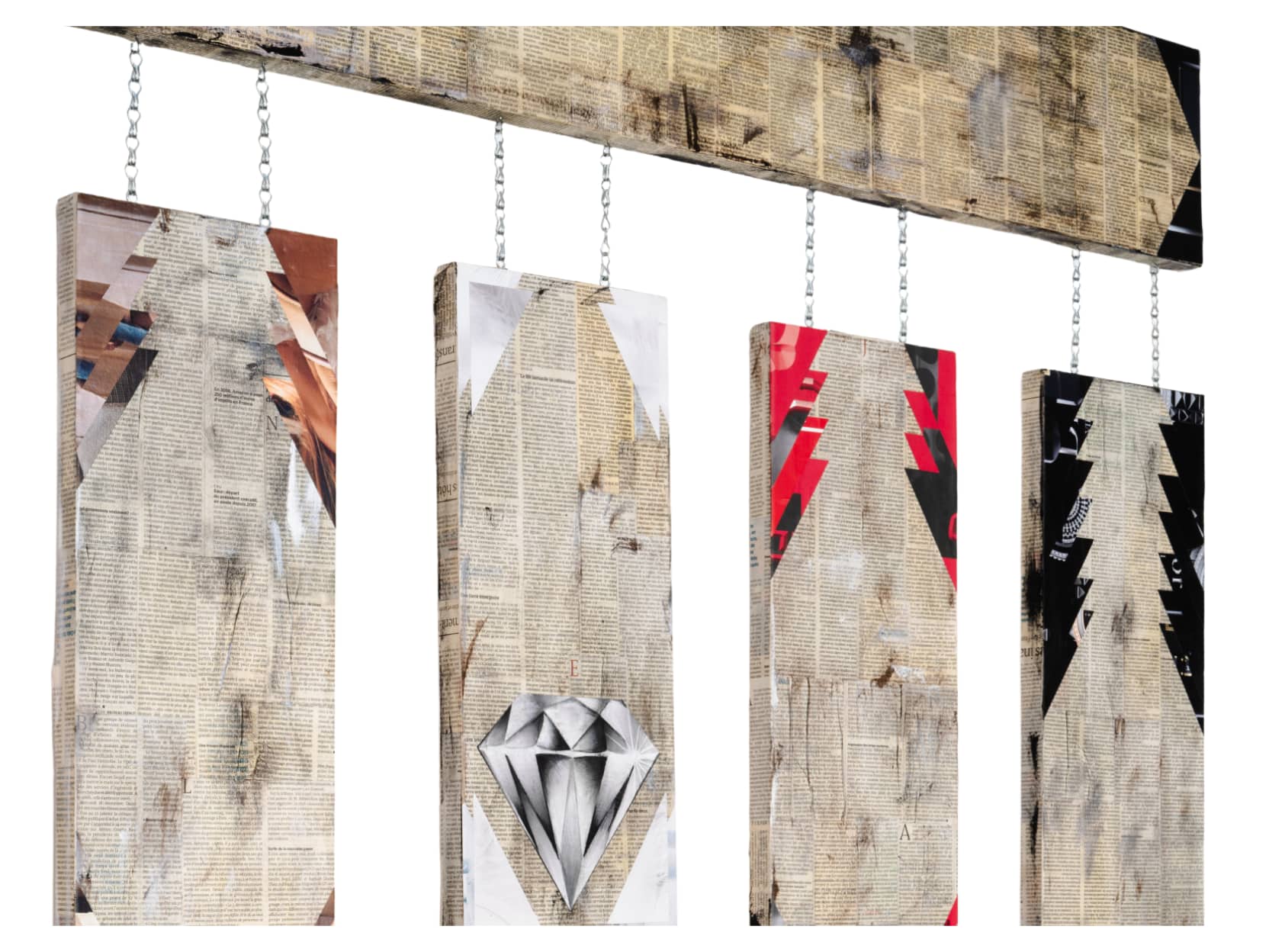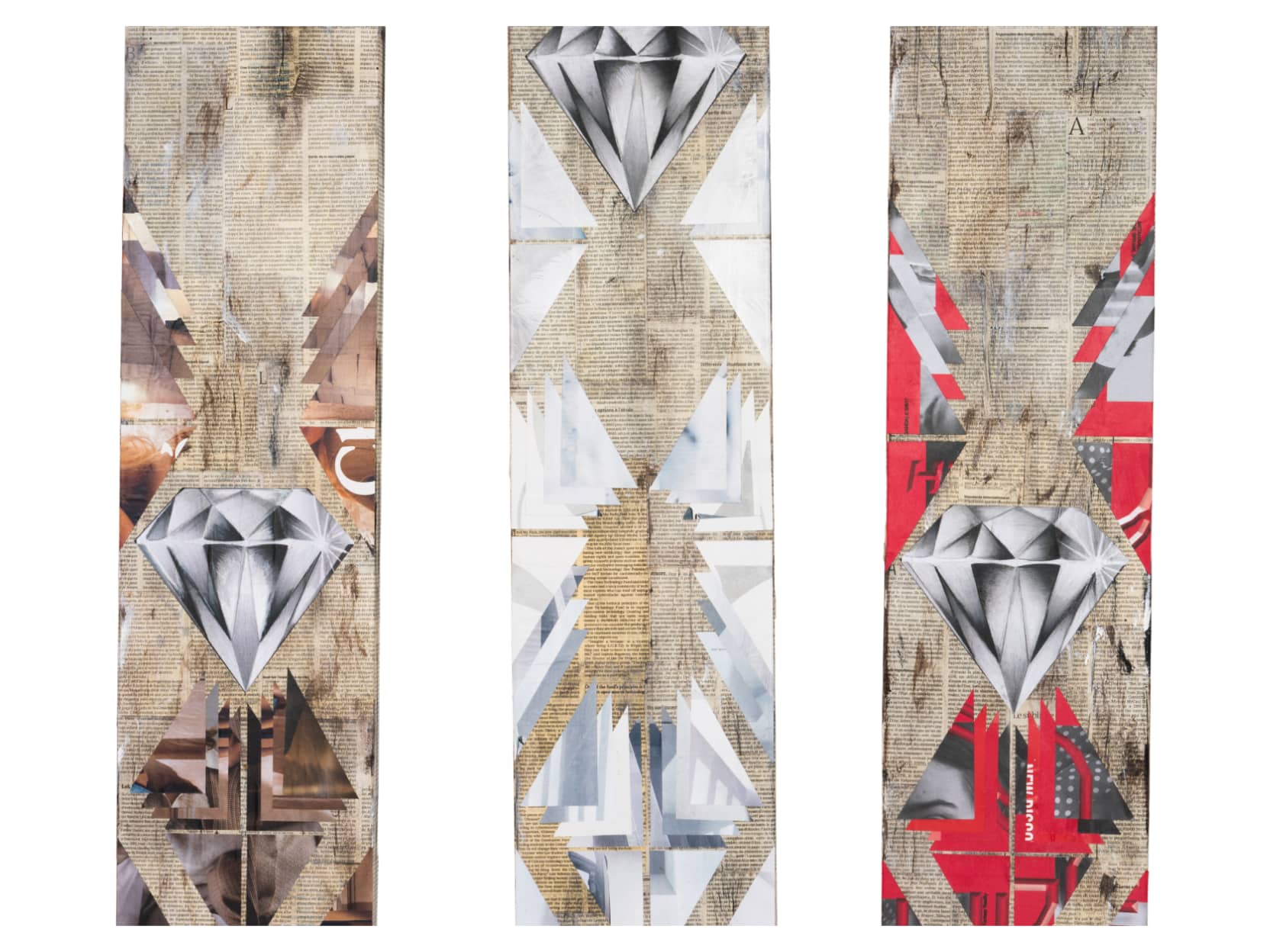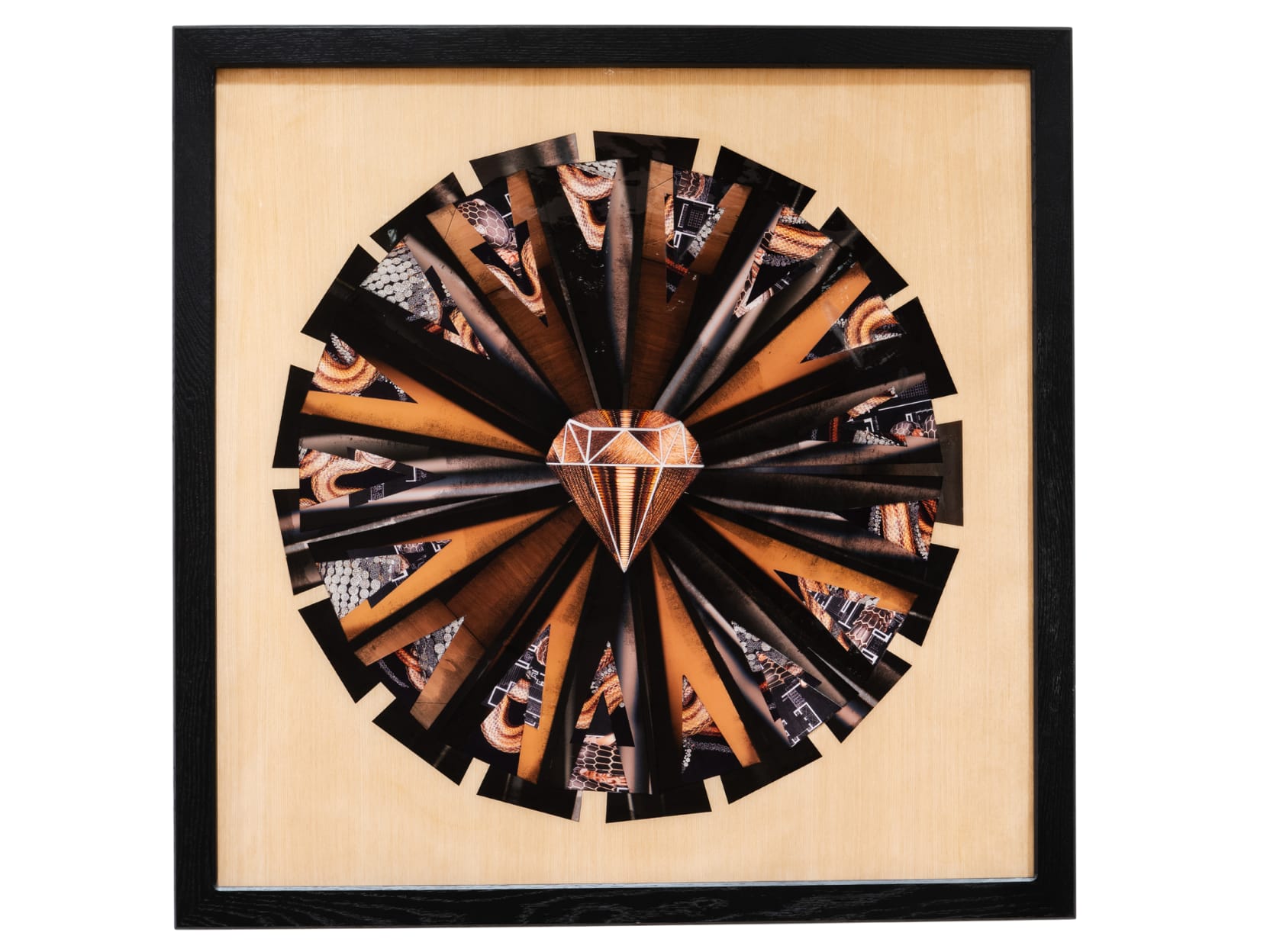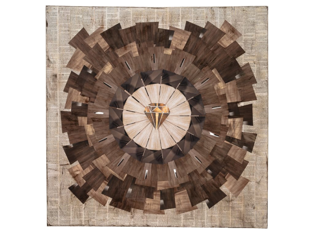 A mesmerizing series of artworks carefully crafted from delicate paper cuts and arranged on canvas